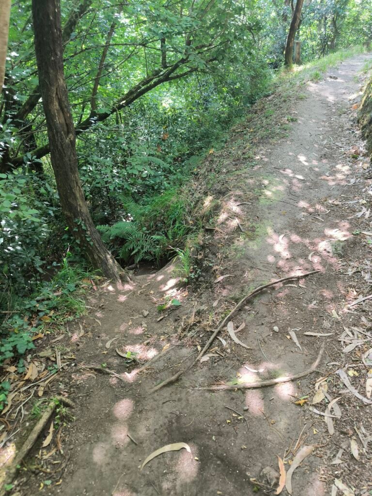 La última parte del camino será continuar el descenso por un camino mixto de piedras, raíces de arboles y arena, hasta dar al mismo punto de la Central Hidroeléctrica del Belelle ⚙️ pero en la otra cara de la montaña.