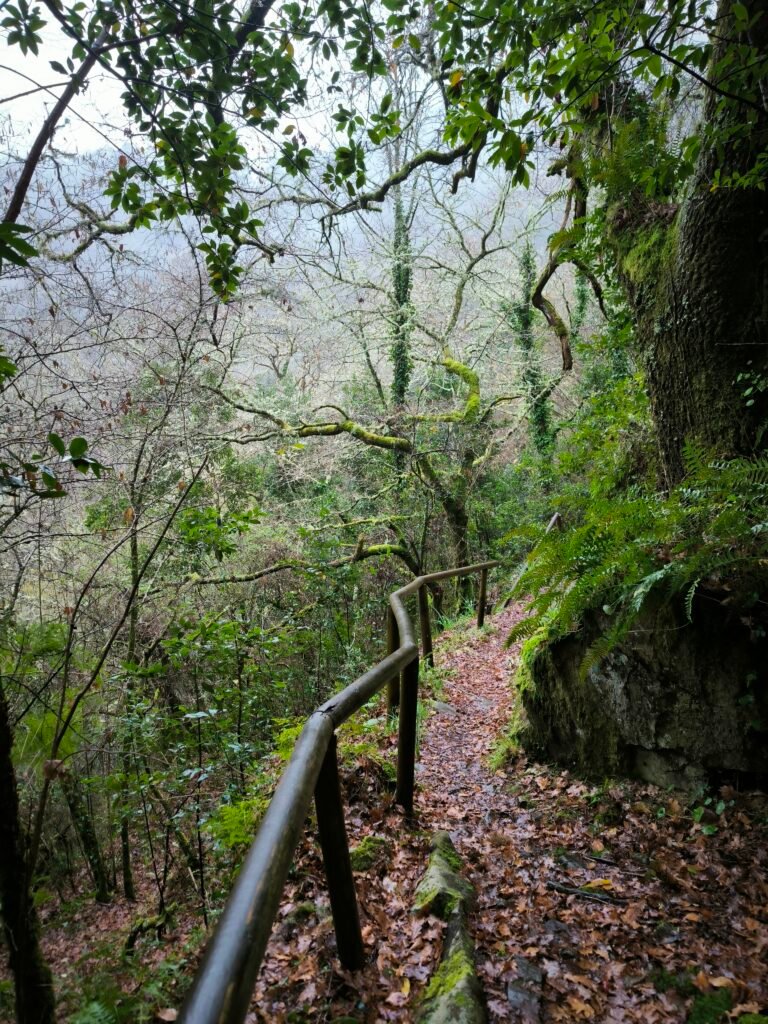 Y alguna foto del invierno tras unas fuertes lluvias. Se nota el suelo lleno de hojas secas, húmedo de lluvias y niebla y una enorme cantidad de agua. Pero el camino es totalmente seguro. Eso si, sin bajar a la poza.