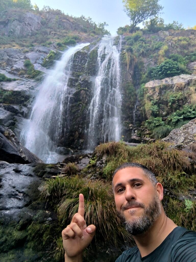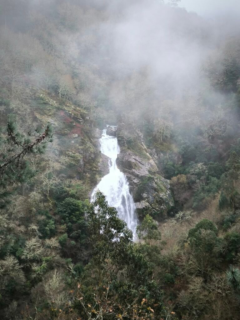 Aquí te muestro la Fervenza tras unos días de fuertes lluvias y otro tras tiempo sin llover. Incluso la foto está tomada más lejos por la cantidad de agua y resbaladizo que está la piedra.
