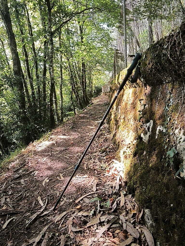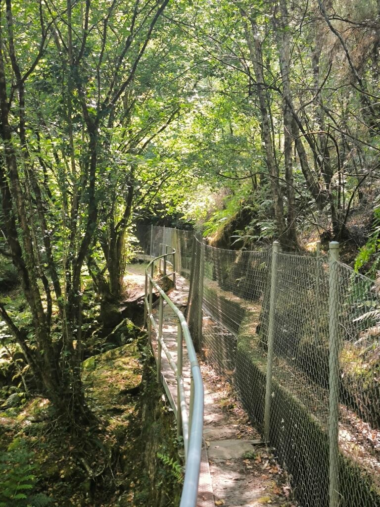 A pocos metros de este desvío nos recibe la Fervenza de Belelle 💦 en el km 1,8, la gran protagonista de la ruta. Si acudimos en temporada de lluvias fuertes la veremos en su mayor esplendor, donde sin salir del camino te mojará la niebla que producen los 45 metros de caida. Por el contrario, en verano podrás acercarte caminando sobre las piedras con facilidad.