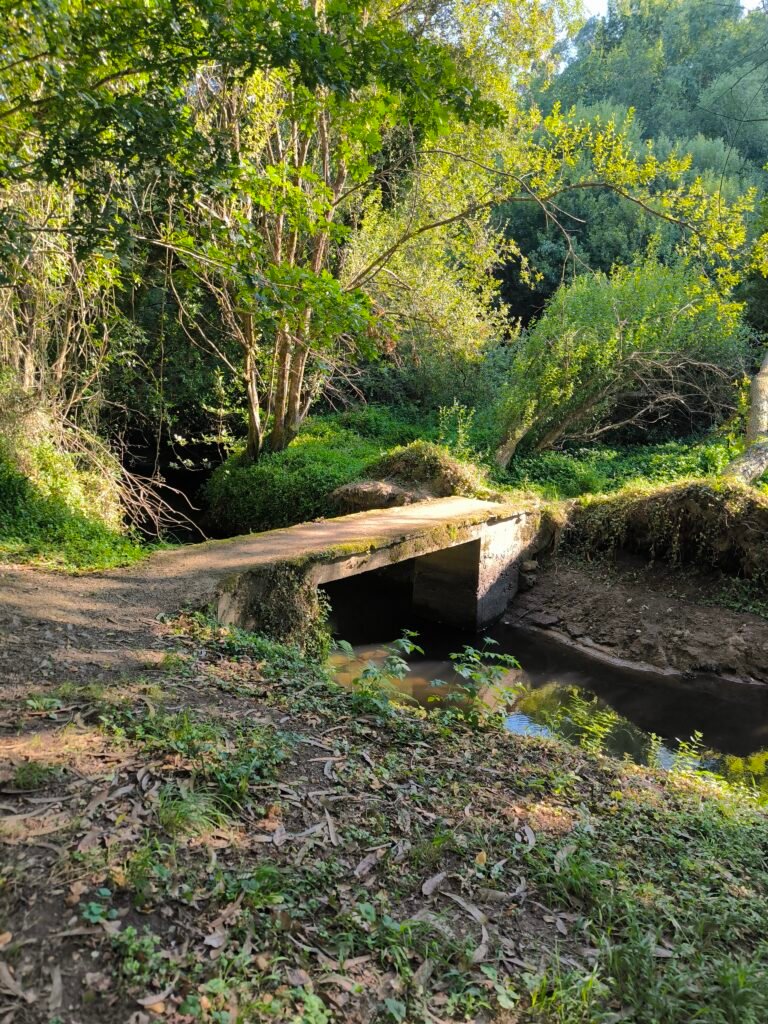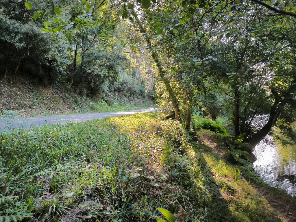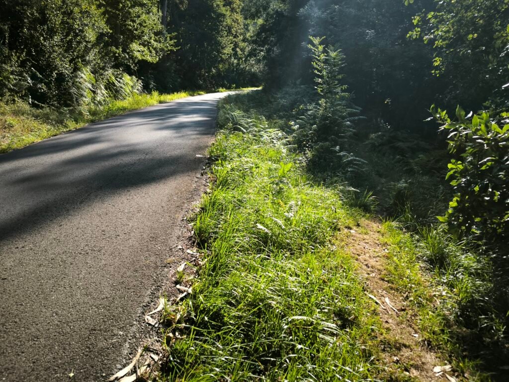 Poco después, en el km 7,6, cruzamos el Puente Románico de Pielas 🌉, un pequeño puente de origen medieval comido por la vegetación que será donde finalice el sendero. A partir de aquí caminaremos por la carretera mientras todo comienza a empinarse.